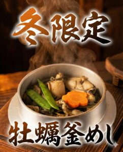 冬の味覚、牡蠣釜めし始まりました新着!!